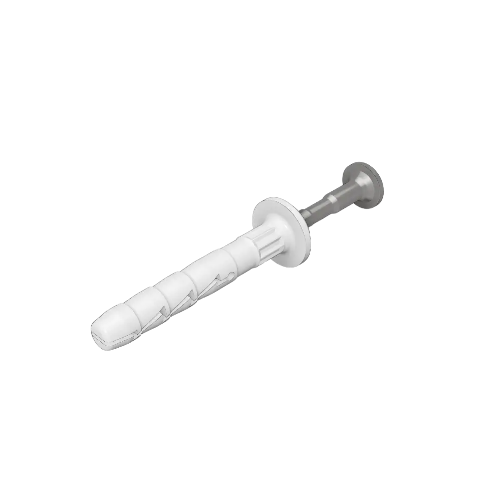 The central 3.8mm diameter pin is then hammered into place so that the barbed portion of the fixing plug splays out into the substrate giving a secure grip and high pull-out resistance.