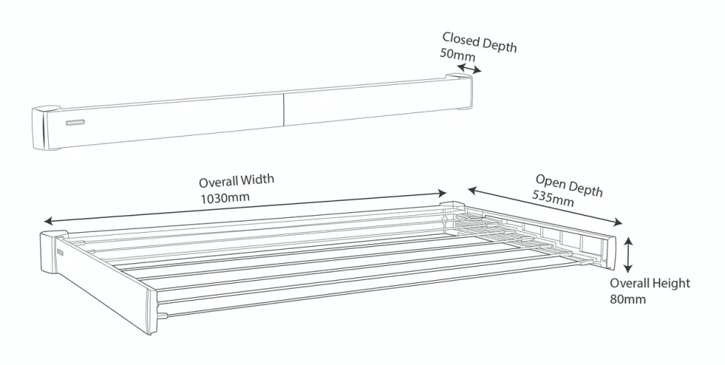 To open it, simply unfold the two wings and the sturdy, powder-coated drying bars are ready for use. Dowels and screws inclusive.