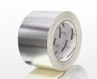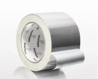 Self-adhesive aluminium foil tape with liner, 50-micron in silver. A dead soft aluminium foil coated with a long-lasting acrylic adhesive with a release liner to protect the adhesive face, mainly used in the insulation industry.