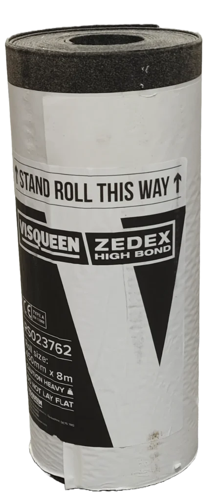 Visqueen Zedex High Bond Damp Proof Course is a DPC and cavity tray system manufactured with a polyester reinforced carrier, rubber modified bituminous coating and surfaced on both sides with a fine silica sand.